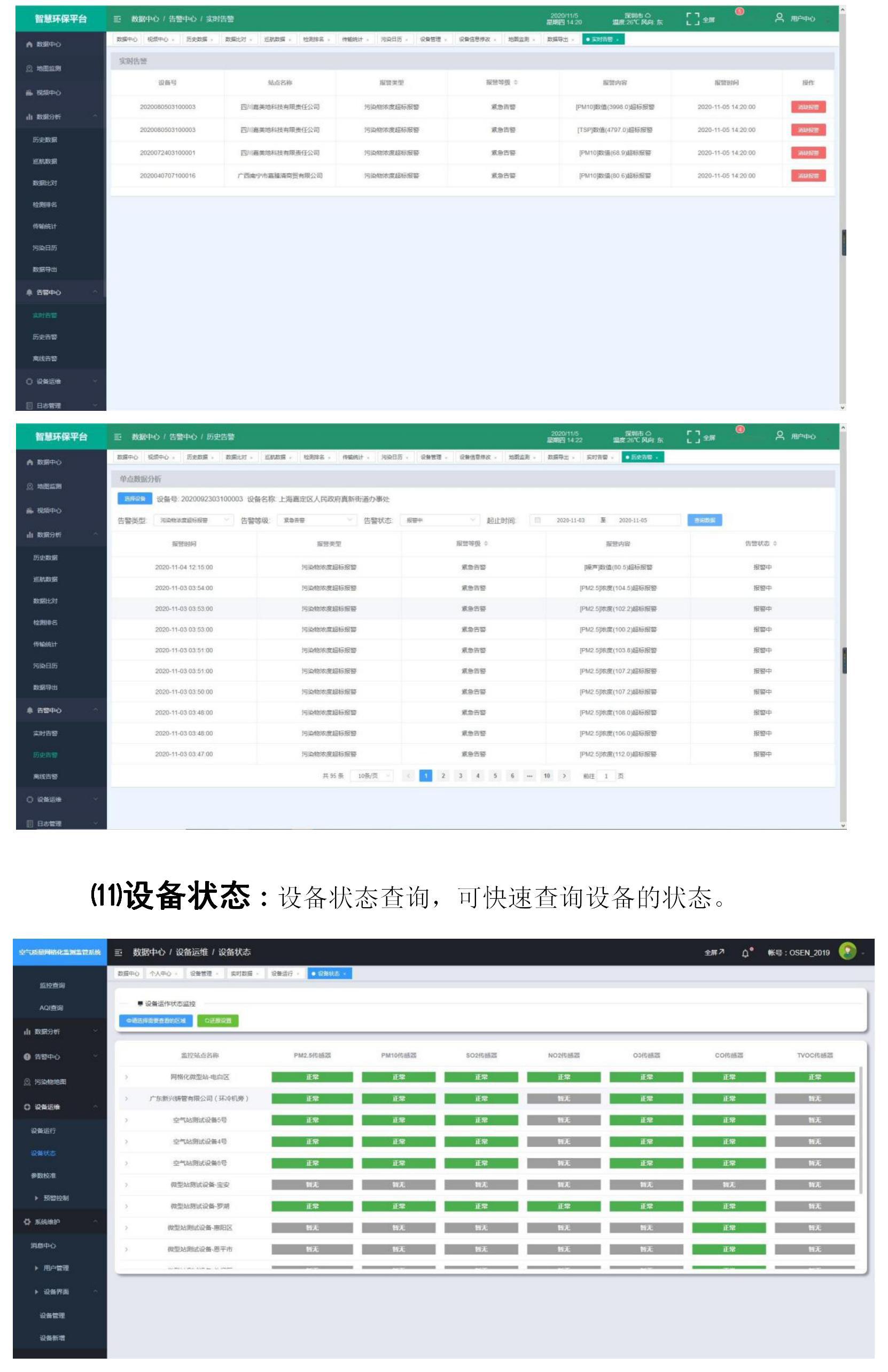 ⑾設(shè)備狀態(tài):設(shè)備狀態(tài)查詢,可快速查詢設(shè)備的狀態(tài)。